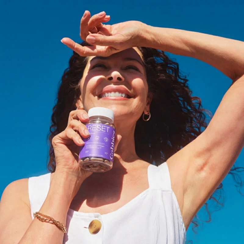 En périménopause, l'irritabilité et la tristesse s'installent sans prévenir. La Vitamine B6 et le Magnésium marin présents dans Reset vous aident à retrouver une humeur stable et apaisée.