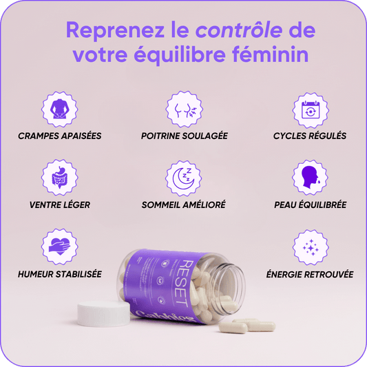 Une formule française 100% naturelle qui anticipe irritabilité, douleurs et fatigue avant même qu'elles n'arrivent.